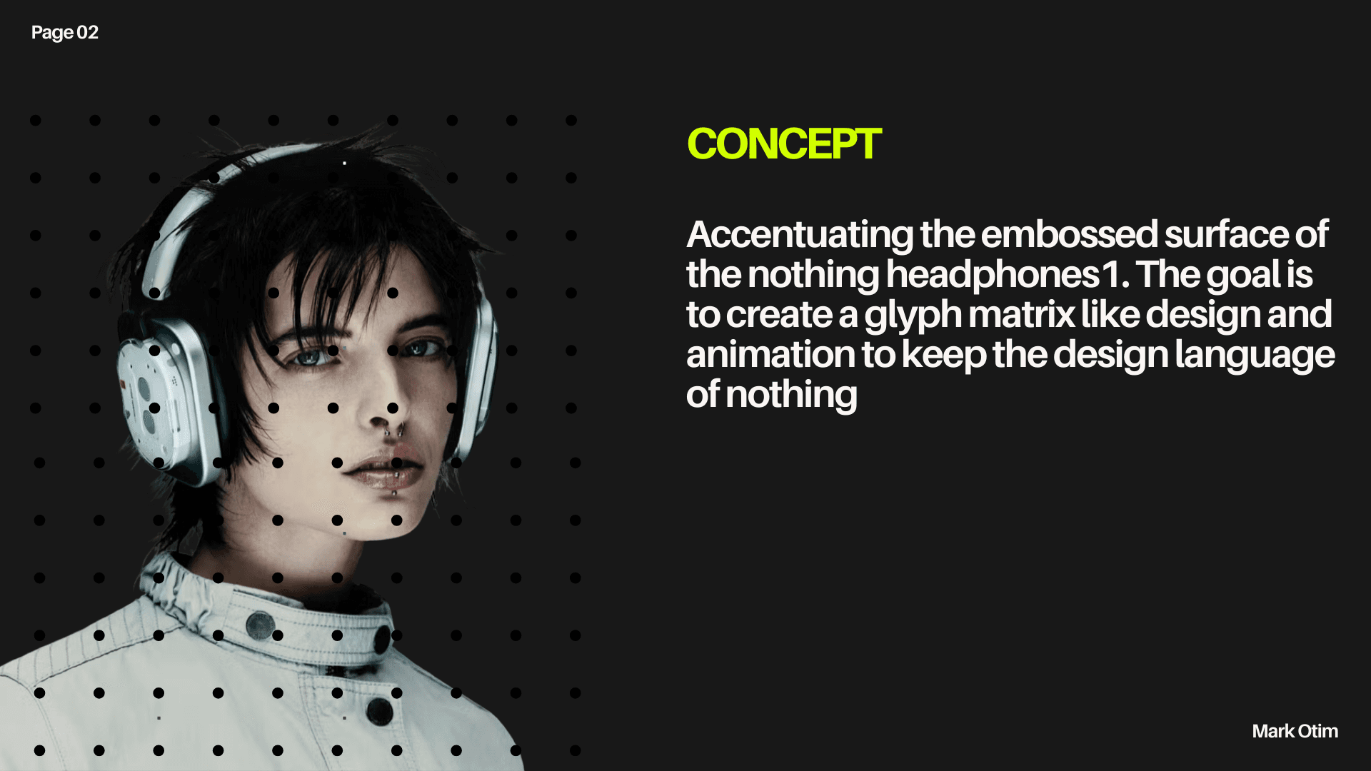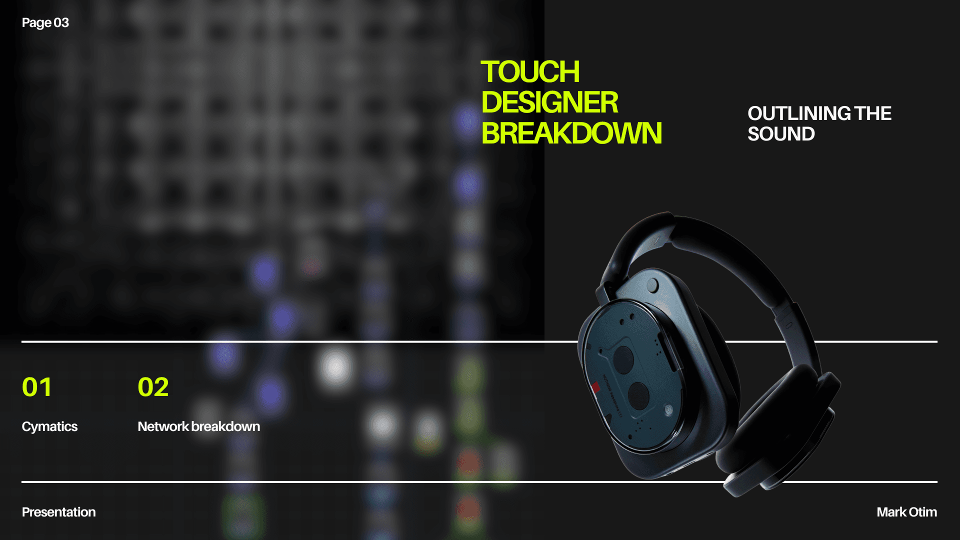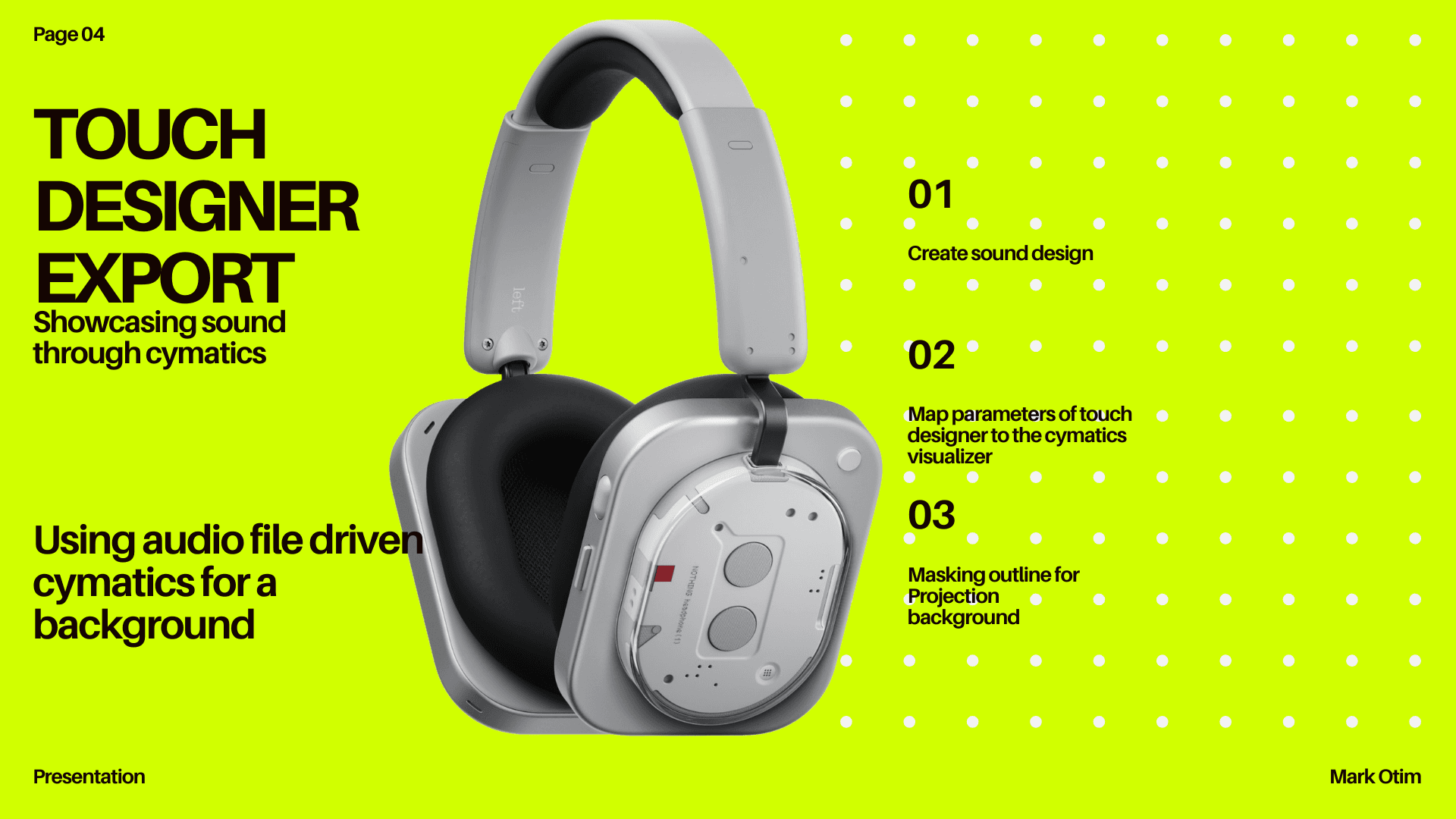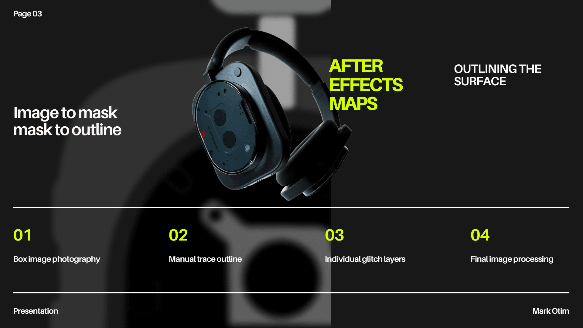 I designed this projection mapping to highlight the headphone(1) by Nothing, using a halftone effect to create a sense of movement and add mystery to the scene. I also incorporated highlights to the ridges of the box to showcase the form of the headphones. The background is created in Touch Designer using a sound cymatics visualizer to show the headphones' connection to sound.